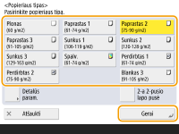 Jei rodomas ekranas, kuriame negalima nurodyti popieriaus formato ir tipoJei rodomas pranešimas, raginantis jus sureguliuokite popieriaus kreiptuvą, sureguliuokite popieriaus kreiptuvo plotį ir dar kartą paspauskite <Gerai>. |