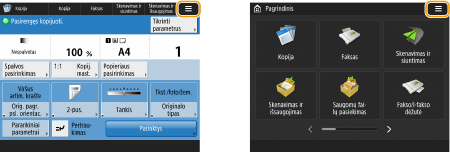 (Pagrindinis). Ekrane <Pagrindinis> rodomas funkcijų mygtukų sąrašas, jame galite iškviesti skirtingas funkcijas. Elementai, rodomi ekrane <Pagrindinis>