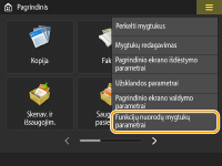 Galite sukurti spartųjį klavišą funkcijoms ekrane <Pagrindinis>. Šiuo klavišu galite atsidaryti skirtingas funkcijas negrįždami į ekraną <Pagrindinis>. Norėdami sukurti spartųjį klavišą, prisijunkite su administratoriaus teisėmis.