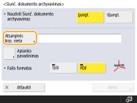 Dokumento kopija įrašoma net ir įvykus siuntimo klaidai. Atsižvelgiant į paskirties vietos tipą, gali būti taikomi toliau išvardyti apribojimai. El. paštas: išsiunčiamas el. laiškas be pranešimo. Faksograma / internetinė faksograma: išsiųstos faksogramos neįmanoma įrašyti kaip elektroninio failo. |