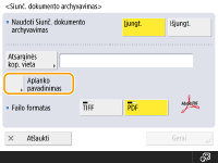 Tiesioginio siuntimo režimo naudoti negalima, jei nustatėte parametro <Siunč. dokumento archyvavimas> reikšmę <On>. Šis parametras automatiškai perjungiamas į parinktį <Išjungt.> toliau išvardytais atvejais. Prireikus iš naujo nurodykite adresatą arba vėl nustatykite parametro reikšmę <Įjungt.>. Jei atsarginis adresatas buvo panaikintas iš adresų knygos Kai adresų knyga buvo importuota iš nuotolinės vartotojo sąsajos Parametro duomenų importavimas/eksportavimas Kai adresų knyga buvo gauta iš adresų knygos tvarkymo programinės įrangos. <Import./eksport. iš adr. knygų valdymo progr. įranga> |