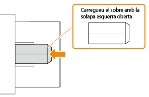 En aquesta secció es descriu la manera com es carreguen els sobres amb l'orientació correcta, a més dels procediments que cal seguir abans de carregar sobres. Per obtenir una descripció del procediment general per carregar sobres a la safata multiús, vegeu Mètode de càrrega de paper bàsic. |