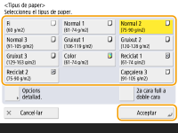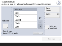 <Acceptar>. Desament de mides i tipus de paper utilitzats freqüentment per a la safata multiús