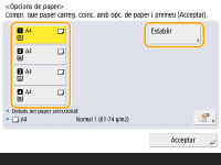 Si la mida o el tipus de paper que es mostra és diferent dels carregats, seleccioneu l’origen de paper on s’ha carregat i premeu <Establir> .