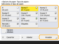 Si el tipus de paper carregat no apareix, premeu <Opcions detallad.> per seleccionar-lo a una llista.