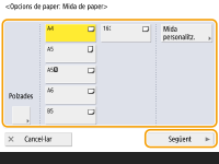 Especifiqueu la mida del paper carregat al calaix de paper.