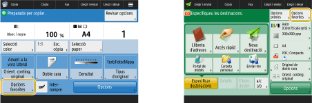 Si utilitzeu amb freqüència la mateixa combinació d'opcions per a la còpia, fax i lectura, convé tenir aquestes opcions desades com a <Opcions favorites>.