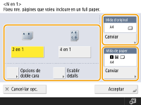 Seleccioneu com voleu disposar les pàgines i seleccioneu la mida de l'original i la mida del paper per fer la còpia.