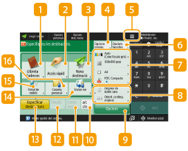 Algunes funcions no es poden utilitzar en combinació amb una altra. Els botons que no es poden seleccionar apareixen de color gris clar. El nombre total de destinacions especificades apareix a la part superior dreta de la pantalla. |