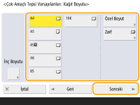 Sayı tuşlarını kullanarak her bir kenarın uzunluğunu girmek için <X> veya <Y> seçeneğine basın. ![]() Sık kullandığınız kağıt boyutlarını <S1> ile <S4> arasındaki düğmelere kaydederseniz, bunları tek bir dokunuşla çağırabilirsiniz. Serbest Boyutlu Kağıt (Özel Boyutlu Kağıt) Kaydetme | |