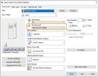 Yazıcı sürücüsündeki [Output Size] ile yazdırılacak kağıdın boyutunu eşleştirin.