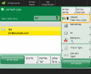 בחירה באפשרות <I-Fax> מאפשרת לשלוח מסמכים סרוקים בצורת פקס דרך האינטרנט.