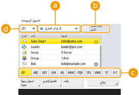 بالنسبة للمسؤوليمكن تصدير/استيراد دفتر العناوين والأزرار التي تعمل بلمسة واحدة. يمكن استخدام ذلك لنسخ البيانات احتياطيًا في حال حدوث عطل أو لتيسير الإجراء المتبع لتسجيل الوجهات بين الأجهزة المدعومة. للمزيد من المعلومات، راجع استيراد/تصدير الإعدادات بشكل فردي. يمكن تخصيص دفتر العناوين لكل مستخدم قام بتسجيل الدخول (قائمة العناصر التي يمكن تخصيصها). كما أنه يمكن استخدام وحدة مزامنة الإعدادات المخصصة للتمكين من مشاركة دفتر العناوين بواسطة عدد من طابعات Canon متعددة الوظائف (مزامنة الإعدادات للطابعات متعددة الوظائف من Canon). يمكنك ضبط كلمة مرور لتجنب التحرير أو الحذف غير المصرح به في دفتر العناوين. تعيين رمز PIN لدفتر العناوين إذا كانت هناك وجهات لا تريد عرضها في دفتر العناوين أو إذا كنت تُقيِّد وصول المستخدمين إلى الوجهات، فأدخل رقم الوصول عند تسجيل وجهة ما. لاستخدام رقم الوصول، من الضروري تنشيط الإعداد مسبقًا في تقييد الوصول إلى الوجهات المسجلة في دفتر العناوين. قم بتهيئة قوائم عنوان مجموعة المستخدمين من Remote UI (واجهة المستخدم البعيدة). (تسجيل الوجهات عبر Remote UI (واجهة المستخدم البعيدة)) |