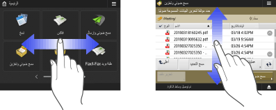 استعراض دليل الوظائفاضغط على <برنامج تعليمي> لعرض شاشة تُعرّفك بما يمكنك القيام به باستخدام وظائف الجهاز بالإضافة إلى إرشادات خاصة باستخدام النسخ والمسح الضوئي، إلخ. استعرض هذه الشاشة عندما ترغب في معرفة المزيد عن الوظائف المتوفرة وكيفية استخدامها. ![]() مثال: برنامج تعليمي عن وظائف النسخ عندما تُحدِّد عنصرًا من القائمة، تُعرض شاشة البرنامج التعليمي. ![]() استخدام وظيفة التعليماتوفقًا للوظيفة الجاري عرضها، تُعرض أحيانًا في الجزء العلوي الأيمن من الشاشة. اضغط على للتحقق من الوصف وطريقة تشغيل الوظيفة.![]() اضغط على <إنهاء> للعودة إلى الشاشة السابقة. التشغيل بنفس طريقة تشغيل الهاتف الذكي (التمرير/السحب والإفلات)في بعض الشاشات، يمكنك تبديل الصفحة أو التمرير عن طريق التمرير بإصبعك للأعلى/للأسفل أو لليسار/لليمين على الشاشة كما تفعل مع هاتفك الذكي. ![]() ![]() كما يمكنك تعطيل وظائف التمرير. <استخدام وظيفة التمرير> يتعذر استخدام وظائف التمرير ووظائف السحب والإفلات عندما يتم ضبط <عكس ألوان الشاشة> على <تشغيل>. <عكس ألوان الشاشة> على الشاشات ذات الأزرار المتحركة، يمكن سحب الأزرار وإفلاتها لنقلها. ![]() |