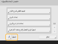 إذا لم تظهر <اختصار الإعدادات/التسجيل> في شاشة <الرئيسية>، فاضغط على  <إعدادات إدارة الصفحة الرئيسية>  <تقييد عرض الوظائف>  <ضبط>  واضبط <اختصار الإعدادات/التسجيل> ليتم عرضها. المختصرات التي يمكن تسجيلها: 10 |