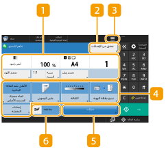 يعرض حالة الإعداد مثل نسبة النسخ وحجم الورق وعدد النسخ. احرص على تأكيد الإعداد حتى يتم النسخ بشكل صحيح. لتغيير الإعدادات، اضغط على الزر الموجود أسفل قسم العرض.