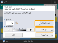 اضغط على <تغيير الإعدادات> لتغيير الإعدادات. تعرض <نسخ عينة>بعد تغيير الإعدادات. نسخ عينة مرة أخرى
