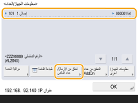 اضغط على <مراقبة الخدمة> <اختبار الاتصال> للتحقق من الاتصال بخادم المراقبة عن بعد. عند تنفيذ هذه الوظيفة، يتم إرسال المعلومات إلى خادم المراقبة عن بعد بصفة دورية. يلزم تمكين الاتصال بيم الجهاز والخادم الذي يقدم الخدمة حتى يتم استخدام هذه الوظيفة.يمكنك طباعة قائمة توضح عدد الصفحات المستخدمة للنسخ والطباعة والمسح الضوئي والفاكس. كما يمكنك التحقق من معلومات العداد لكل AddOn. اضغط على <التحقق من عداد AddOn> على الشاشة في الخطوة 2. إذا ضغطت على <معلومات الجهاز/أخرى> <التحقق من تكوين الجهاز> في نفس الشاشة، يمكنك التحقق من الخيارات المثبتة في الجهاز.لمعلومات عن حالات العداد، اتصل بوكيلك أو مندوب الخدمة لديك. |