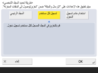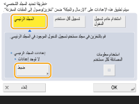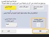 2 | حدد معلومات المصادقة المراد استخدامها، واضغط على <موافق>. لاستخدام اسم مستخدم وكلمة مرور منفصلين للمجلد الشخصي، اضغط على <استخدام معلومات المصادقة لكل مستخدم> لإضافة علامة اختيار. قم بإزالة علامة الاختيار لاستخدام نفس اسم المستخدم وكلمة المرور اللذين تم إدخالهما عند تسجيل الدخول. إذا تمت إضافة علامة اختيار إلى هذا العنصر، فيجب تسجيل اسم مستخدم وكلمة مرور لكل مستخدم. ![]() ![]() لا يمكن استرداد معلومات المصادقة المطلوبة للوصول إلى مجلد شخصي (اسم المستخدم وكلمة المرور) من Active Directory. إذا تم تحديد <استخدام معلومات المصادقة لكل مستخدم>، يتم تسجيل اسم المستخدم وكلمة المرور لتسجيل الدخول إلى الجهاز بمصادقة لوحة المفاتيح كمعلومات مصادقة للوصول إلى المجلد الشخصي. ![]() من الضروري استخدام خدمة تسجيل الدخول التي تدعم هذه الوظيفة. لمزيد من المعلومات، استشر الوكيل أو مندوب الخدمة لديك. إذا كنت تستخدم مصادقة المستخدم، فقم بتكوين مجلد في "homeDir" الذي يعد سمة للمستخدم في Active Directory (الدليل النشط)، باستخدام تنسيق "\\host name\folder path (//اسم المضيف/مسار المجلد). |