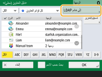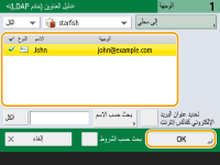 شاشة الميزات الأساسية للمسح الضوئيتحديد الوجهات من دفتر العناوين