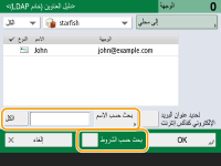 عند البحث عن وجهات في خادم LDAP، اضغط على إما <بحث حسب الاسم> أو <بحث حسب الشروط>.