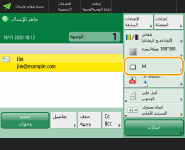 اتجاه محتوى المستند الأصلي تحديد الجزء العلوي والسفلي من المستند الأصلييمكنك ضبط اتجاه المستند قبل المسح الضوئي بحيث يتم وضع أعلاه وأسفله بشكل صحيح عند عرض الملف المرسل/المحفوظ على الكمبيوتر. اضغط على <خيارات> على شاشة الميزات الأساسية للمسح الضوئي  <اتجاه محتوى المستند الأصلي>  <الأعلى عند الحافة البعيدة>  <موافق>. تحديد وجهات متعددة بما في ذلك الفاكساتيمكّنك ضبط <تمكين الفاكس في وظيفة "مسح ضوئي وإرسال"> على <تشغيل> من تحديد وجهات الفاكس من شاشة الميزات الأساسية للمسح الضوئي ( <عرض وظيفة الفاكس>). يُعد هذا الإعداد مفيدًا لتحديد وجهات متعددة بما في ذلك الفاكسات، على سبيل المثال عند حفظ نسخة من الفاكس المرسل في خادم ملفات. التحقق من الصور الممسوحة ضوئيًا قبل الإرسال/الحفظتسجيل الإعدادات متكررة الاستخدام |
