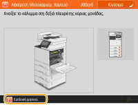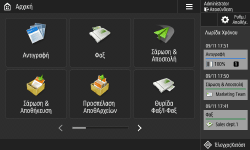 Πατήστε το που εμφανίζεται στην οθόνη <Αρχική> και στην οθόνη βασικών λειτουργιών για να πραγματοποιήσετε αλλαγές στην οθόνη, όπως επαναρρύθμιση πλήκτρων ή δημιουργία πλήκτρου συντόμευσης. Προσαρμογή της οθόνης αφής![]() Μπορείτε να αλλάξετε τις ρυθμίσεις σχετικά με την εμφάνιση της οθόνης, όπως να καθορίσετε ποια οθόνη θα εμφανίζεται αμέσως μετά την ενεργοποίηση της συσκευής και αν θα εμφανίζεται το μήνυμα για την εναπομένουσα ποσότητα χαρτιού και γραφίτη. <Ρυθμίσεις Εμφάνισης> Μπορείτε να ορίσετε την οθόνη που θα εμφανίζεται όταν έχει περάσει κάποιο χρονικό διάστημα χωρίς εκτέλεση κάποιας λειτουργίας. <Λειτουργία μετά από Αυτόματη Επαναφορά> |