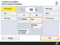 Καθορίστε την κλίμακα αντιγραφής και πατήστε <OK>.