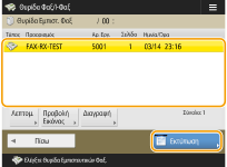 ![]() | Αυτή η λειτουργία σάς δίνει τη δυνατότητα να αποθηκεύετε στην καθορισμένη θέση αποθήκευσης (Θυρίδα εμπιστευτικών φαξ) τα εισερχόμενα έγγραφα που ταιριάζουν με συγκεκριμένες ρυθμίσεις. Η θυρίδα εμπιστευτικών φαξ περιέχει πολλαπλές θυρίδες, καθεμία από τις οποίες δύναται να προστατευτεί με κωδικό πρόσβασης. Καθορίζοντας μια ρύθμιση, όπως την αποθήκευση όλων των εγγράφων της Εταιρείας Α στη Θυρίδα 10, μπορείτε να ελέγχετε μόνο τα έγγραφα που χρειάζεστε. Αυτή η λειτουργία σάς δίνει επίσης τη δυνατότητα να εμποδίζετε την ακούσια έκθεση εμπιστευτικών εγγράφων σε μη εξουσιοδοτημένα άτομα, καθορίζοντας έναν κωδικό πρόσβασης. Όταν η ένδειξη Επεξεργασία/Δεδομένα στον πίνακα ελέγχου παραμένει σταθερά αναμμένη πράσινη, ακολουθήστε τις παρακάτω διαδικασίες για να ελέγξετε/εκτυπώσετε τα αποθηκευμένα έγγραφα. |