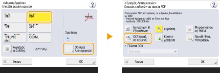 1 | Επιλέξτε <PDF> και πατήστε <Ορισμός Λεπτομερειών> <OCR (Αναζ. σε Κείμενο)>.![]() |