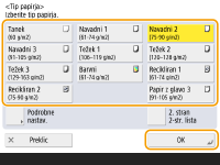 <OK>. Registracija pogosto uporabljene velikosti in vrste papirja za večnamenski pladenj