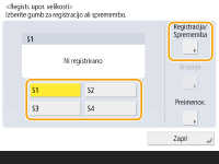 Izberite gumb od <S1> do <S4> in pritisnite <Reg./Sprem.>.