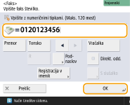 Preverjanje skupnega števila navedenih prejemnikovSkupno število izbranih prejemnikov je prikazano na vrhu zaslona. Tako lahko pred pošiljanjem preverite, ali je število prejemnikov pravilno. ![]() Pošiljanje z informacijami o pošiljateljuDokument lahko pošljete z imenom in številko faksa pošiljatelja. <ID pošiljatelja> Preverjanje stanja poslanih dokumentovStanje poslanih dokumentov lahko preverite na zaslonu <Nadzor stanja>. Na tem zaslonu lahko po preverjanju stanj fakse pošljete znova ali prekličete njihovo pošiljanje. Preverjanje stanja in dnevnika oddanih in sprejetih dokumentov Ko je možnost <Prikaz obvestila, ko je opravilo sprejeto> nastavljena na <On>, je mogoče zaslon <Nadzor stanja> prikazati s tega zaslona, ki se prikaže, ko je poslano opravilo prejeto. <Prikaz obvestila, ko je opravilo sprejeto> ![]() Napaka oddajanja, ker je prejemnikova linija zasedenaNaprava po določenem obdobju samodejno znova pokliče številko. Te nastavitve, na primer število ponovnih klicanj naprave in interval med ponovnimi klicanji, lahko spremenite. <Avto pon. izb.> Tiskanje poročila z rezultati pošiljanjaČe na zaslonu z osnovnimi funkcijami faksa pritisnete <Opcije> <Poročilo o rezultatu ODD>, lahko nastavite, da naprava samodejno natisne poročilo o rezultatih pošiljanja.Če želite v razdelku <Opcije> to nastaviti za vsa opravila, morate v razdelku <Poročilo o rezultatu ODD> izbrati <Samo ob napaki> ali <Ne> in nato nastaviti <Omogoči izpisovanje z opcij> na <Da>. Če so barve v poslani sliki pretemne ali če svetlih barv v ozadju barvnih izvirnikov ni mogoče odstranitiKakovost poslane slike bo morda mogoče izboljšati tudi, če so izpolnjeni ti pogoji/nastavitve. Vrsta opravila: Faksiranje (Pošiljanje iz pomnilnika) ali optično branje in pošiljanje (faks/i-faks): <Izbira barve>: <Črno-belo> (Optično branje in pošiljanje) <Tip originala>: <Tekst> <Gostota> <Gostota ozadja>: <Avto><Ločljivost>: 200 dpi x 400 dpi, 300 dpi x 300 dpi*, 400 dpi x 400 dpi ali 600 dpi x 600 dpi* * Možna je nastavitev za optično branje in pošiljanje. <Prioriteta hitrosti/kakov. slike za Črno-belo skeniranje> Faks/I-Faks opravila oddajanja: <Prioriteta kakovosti> (<Prioriteta hitrosti/kakov. slike za Črno-belo skeniranje>) |