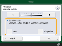 ![]() | Prilagodite lahko gostoto ozadja. Pošiljate lahko jasne izvirnike z barvnim ozadjem ali tanke izvirnike, na primer časopise, pri katerih so znaki in slike na hrbtni strani vidni prosojno. Prilagajanje gostote ozadja |