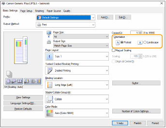 3 | Med ogledom predogleda tiskanja nastavite [Page Layout] [Page Order] [1-sided/2-sided/Booklet Printing] [Binding Location]. |