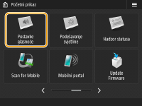 <Ton moda mirovanja> | Zvuk koji uređaj proizvede kada uđe u stanje mirovanja ili kada se isključi ako ste mogućnost <Postavke brzog pokretanja za glav. napajanje> postavili na <Uključeno>. (Uređaj se u određenim situacijama ne pokreće brzo te neće proizvesti zvuk.) |