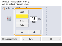 3 | Pritisnite <Sredina> ili <Strane> i unesite svaku širinu brisanja. |