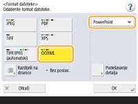 1 | Odaberite <OOXML> odaberite <PowerPoint> s padajućeg popisa.![]() ![]() Za promjenu jezika koji se koristi za OCR pritisnite <Podešavanje detalja> <Promijeni> odaberite jezik pritisnite <OK>. |