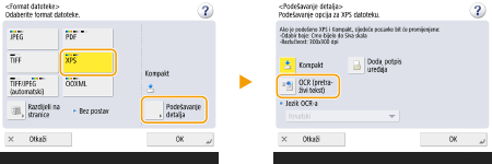 1 | Odaberite <XPS> pritisnite<Podešavanje detalja> <OCR (pretraživi tekst)>.![]() |