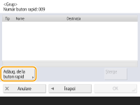 Dacă doriţi să selectaţi o destinaţie de la un buton rapid, apăsaţi <Adăug. de la buton rapid>