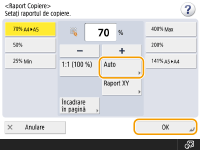 Specificaţi raportul de copiere şi apăsaţi <OK>.