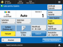 Se afişează butoanele pentru modificarea setărilor de imprimare şi setările curente.