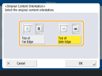 Select <Top at Far Edge> for horizontally-oriented originals, or <Top at Side Edge> for vertically-oriented originals.