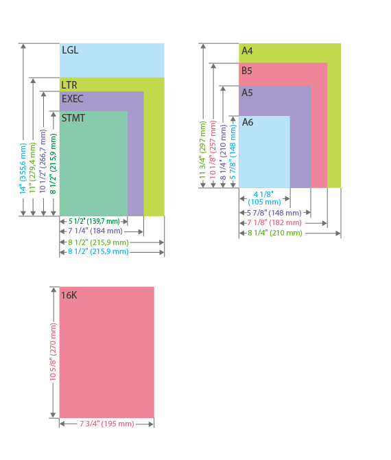 Tamaño de papel: | imageCLASS X MF1538C A4, B5, A5R, LGL, LTR, EXEC, 16K, Tamaño personalizado (de 5 7/8" x 8 1/4" a 8 1/2" x 14" (de 148,0 mm x 210,0 mm a 216,0 mm x 355,6 mm)) imageCLASS X C1538iF A4, B5, A5R, LGL, LTR, EXEC, 16K, FOOLSCAP/FOLIO, OFICIO, LEGAL (India), FOOLSCAP (Australia), F4A, LETTER (Government), LEGAL (Government), OFICIO (Mexico), OFICIO (Brazil) y Tamaño personalizado (de 5 7/8" x 8 1/4" a 8 1/2" x 14" (de 148,0 mm x 210,0 mm a 216,0 mm x 355,6 mm)) |