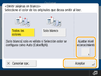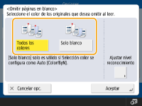 Si el tamaño del original es menor que la opción de tamaño de escaneado, es posible que no se omita correctamente. |
