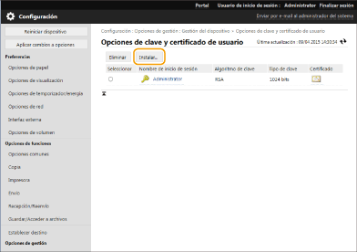 Haga clic en [Gestión del dispositivo]  [Opciones de clave y certificado de usuario].