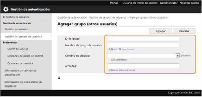 Seleccione [Agregar grupo (otros usuarios)...] si está configurada la autenticación de servidor.