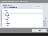 Destinos establecidos en <Opciones favoritas> y <Enviarme a mí>