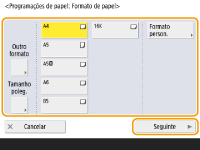 Selecione o tamanho do papel e pressione <Seguinte>.