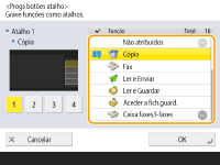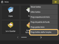Você pode criar um botão de atalho para as funções na tela <Início>. Use esse botão para acessar uma função diferente sem voltar à tela <Início>. Para criar um atalho, faça login com privilégios de administrador.